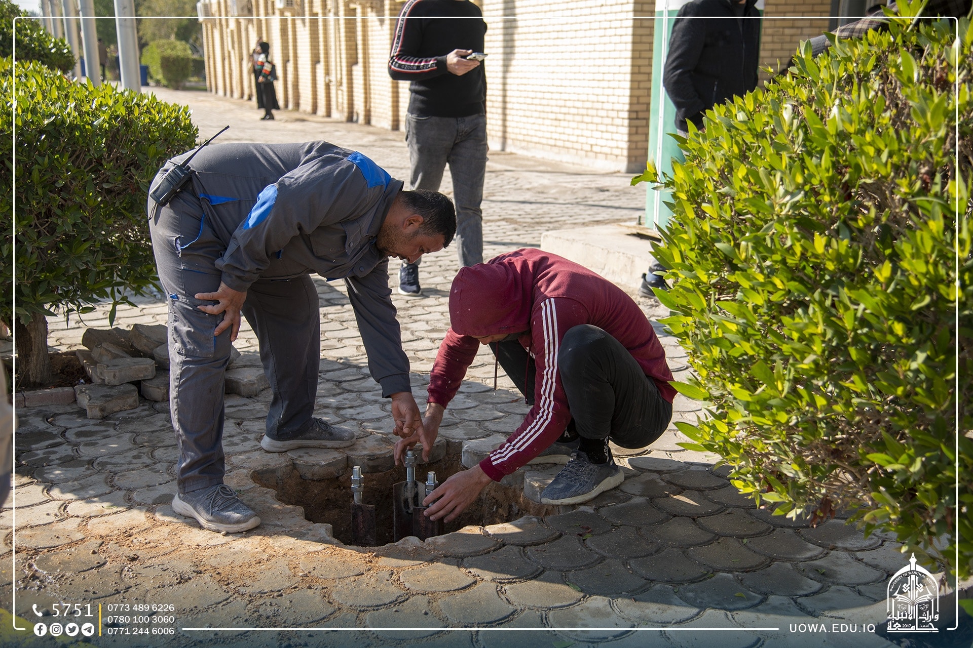 In pictures... Exceptional efforts of the staff of the Diwan Affairs Department at the University of Warith Al-Anbiyaa (peace be upon him) by paying attention to green spaces and the cleanliness of the university to represent it in the best way.