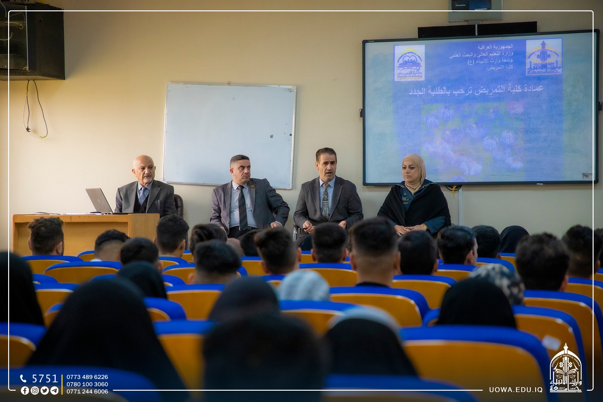 "First-year students at the College of Nursing commence their official attendance, where they were welcomed by the Administrative Assistant, Professor Dr. Nofel Al-Iraqi, and the College's administration.