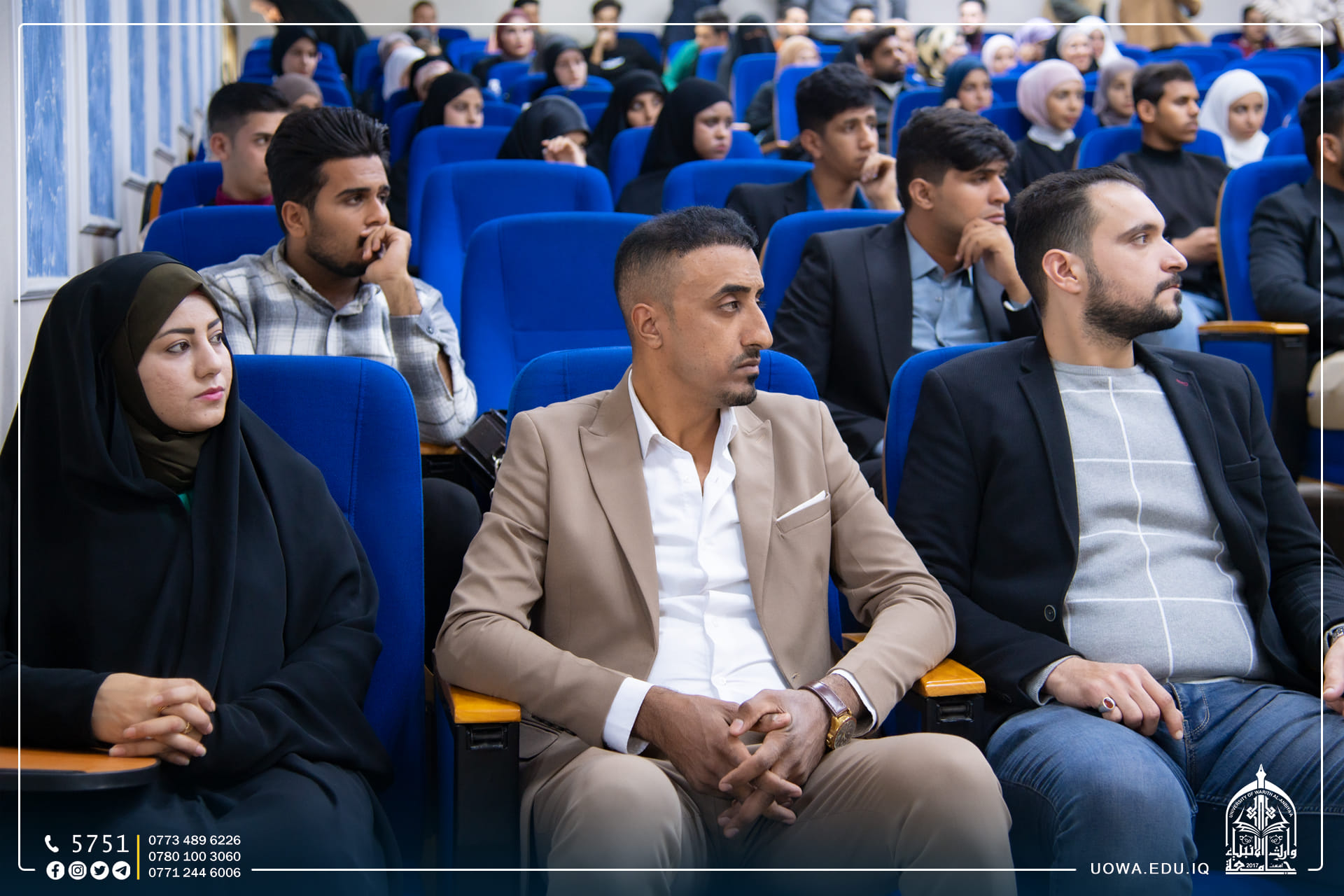 With the aim of enhancing the academic level of the students at the University of Warith Al-Anbiyaa (AS), the Accounting Department at the College of Management and Economics, in collaboration with the Union of Accountants and Auditors/Karbala Branch, organized a scientific seminar titled "The Accountants' Union and Its Importance." The seminar provided an introductory overview of the union, emphasizing its significance. Additionally, it addressed the needs of the job market for accountants and auditors equipped with sufficient knowledge in their field.