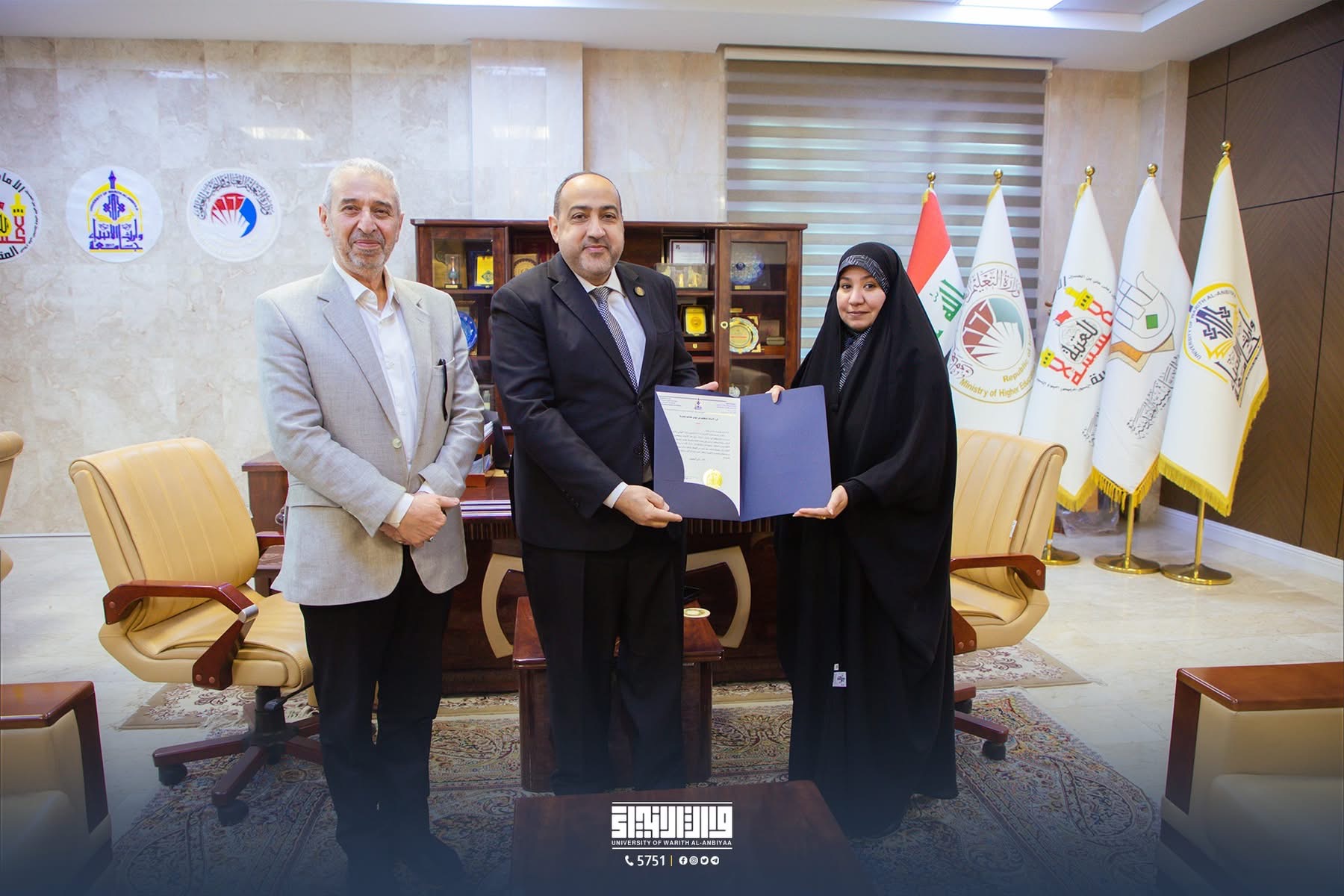The presidency of Warith Al-Anbiyaa University, represented by Professor Dr. Ibrahim Saeed Al-Hayawi, extended congratulations to Professor Dr. Awad Al-Khalidi on the renewal of trust in him and his continuation as the Dean of the College of Administration and Economics, wishing him continued success in his academic and administrative career.