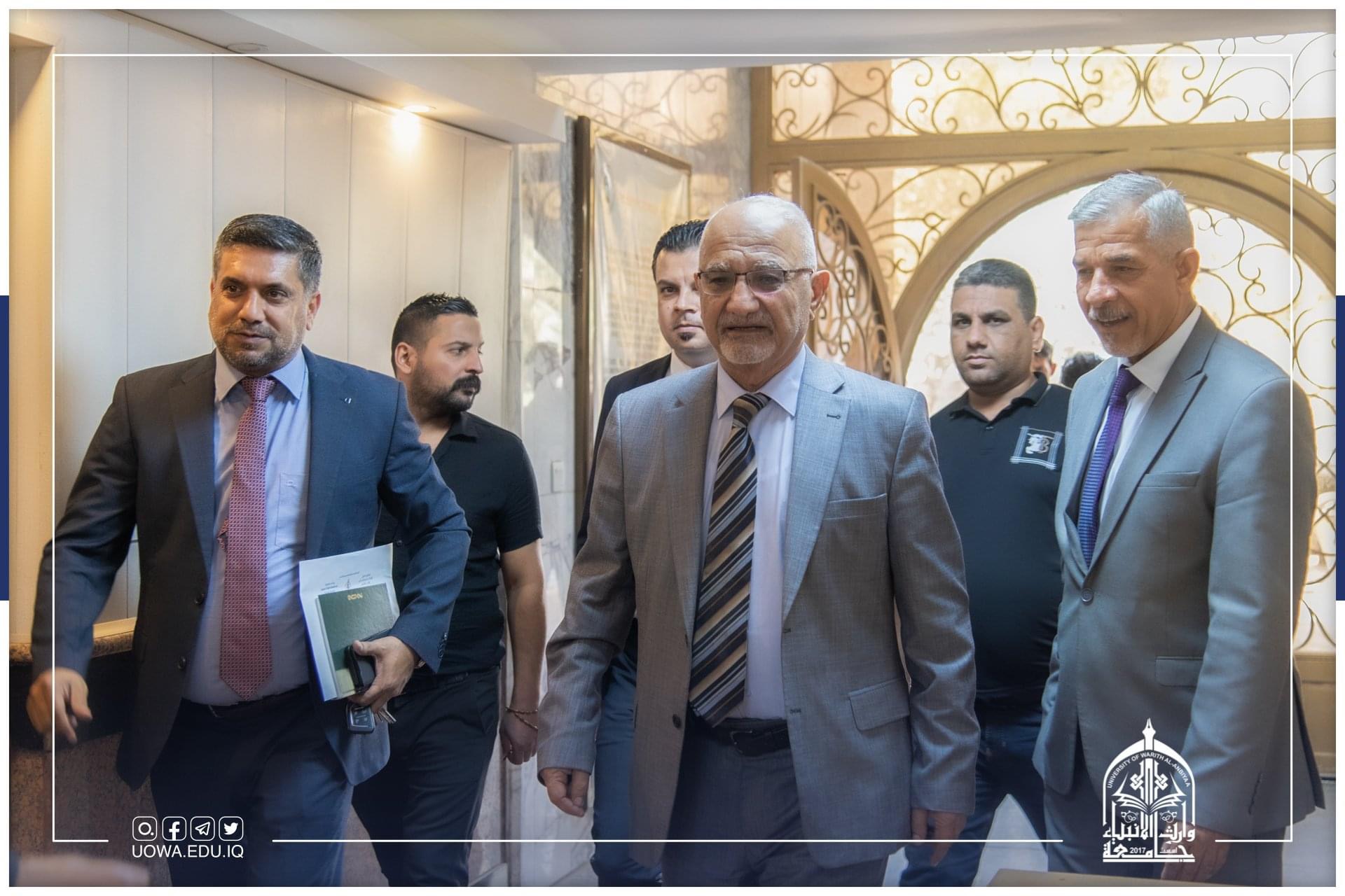 The delegation was headed by Administrative Assistant Prof. Dr. Nofal Al-Araji and the membership of the Dean of the College of Engineering, Prof. Hussein Al-Awadi and Dean of the College of Law, Prof. Ali Al-Sharifi, and they were received by the President of the University of Technology, Prof. Dr. Muhammad Al-Ghabban and Prof. Dr. Hussein Hamid Karim, Assistant President of the Technological University for Administrative Affairs.