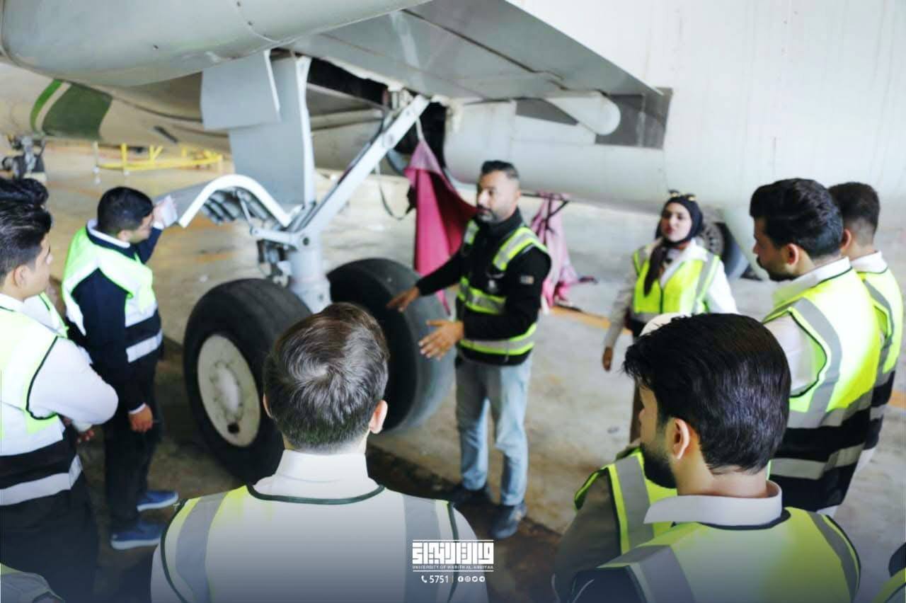 The visit included a comprehensive tour of the various sections of the airport, with a focus on the Iraqi Airways website. The students learned about non-destructive maintenance (NDT) lines for aircraft parts, engine and wheel system maintenance lines, in addition to other details related to aircraft maintenance.
