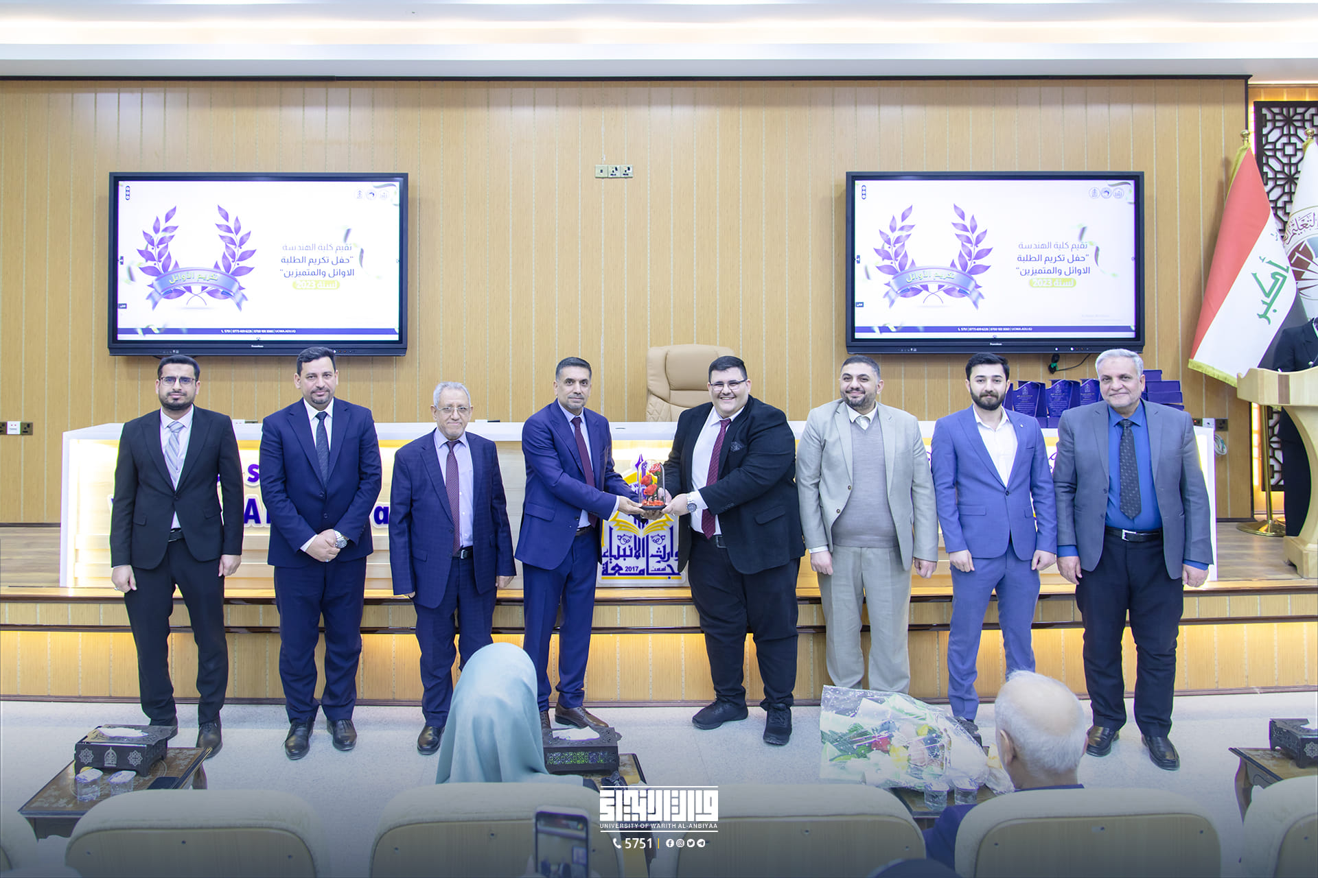 During his speech on the occasion, the Dean of the College of Engineering expressed his thanks and appreciation to all the teaching and administrative staff of the College of Engineering and the students for their high commitment and excellence and the emphasis on all students to be diligent in seeking knowledge and to emulate their outstanding colleagues.