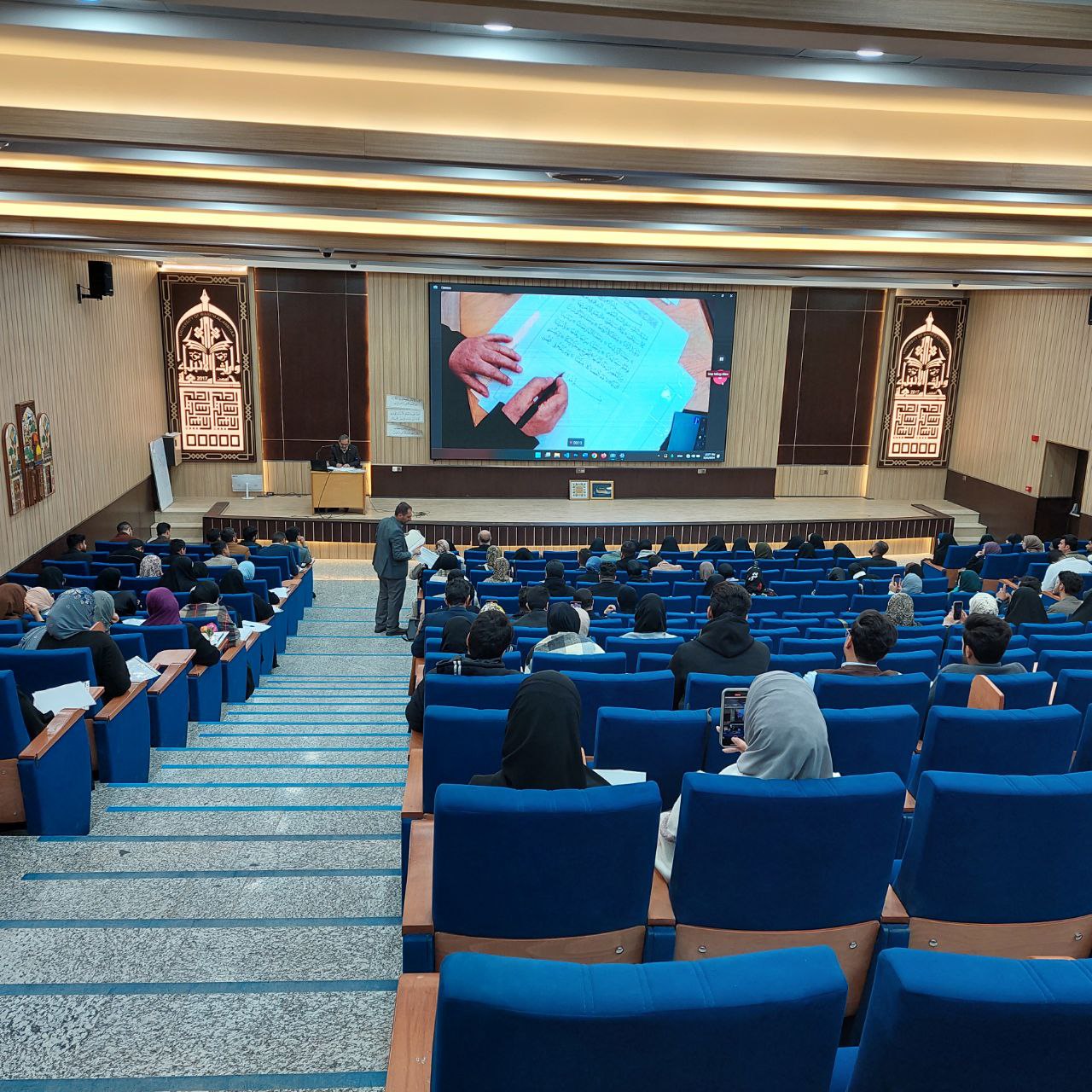 On Monday, December 2, 2024, the College of Islamic Sciences at the University of Warith al-Anbiya (peace be upon him) organized the first workshop in a series of workshops for the “Writing the Holy Qur’an - Words of Light” project, in the hall of the Al-Naeem Building.
