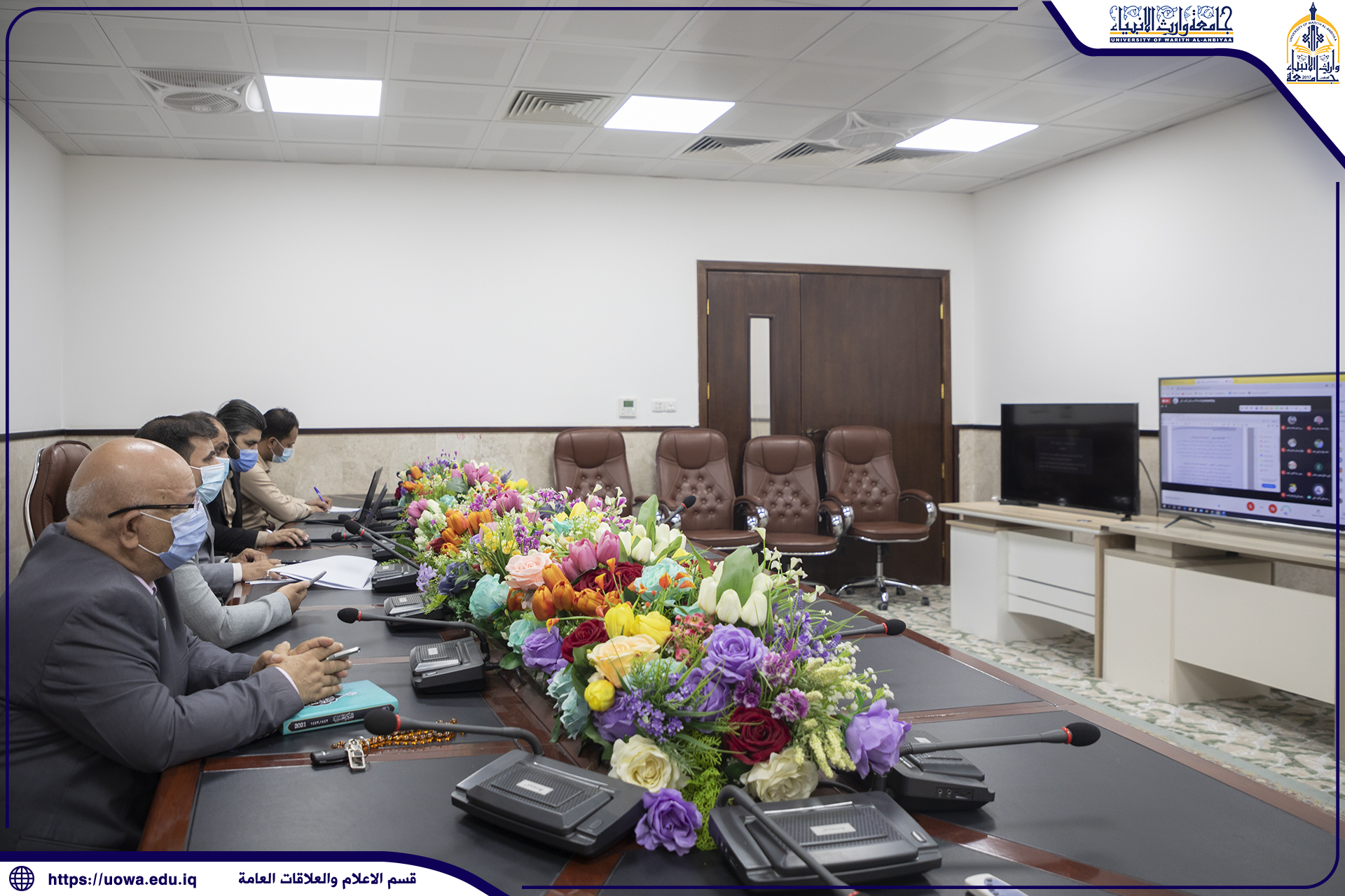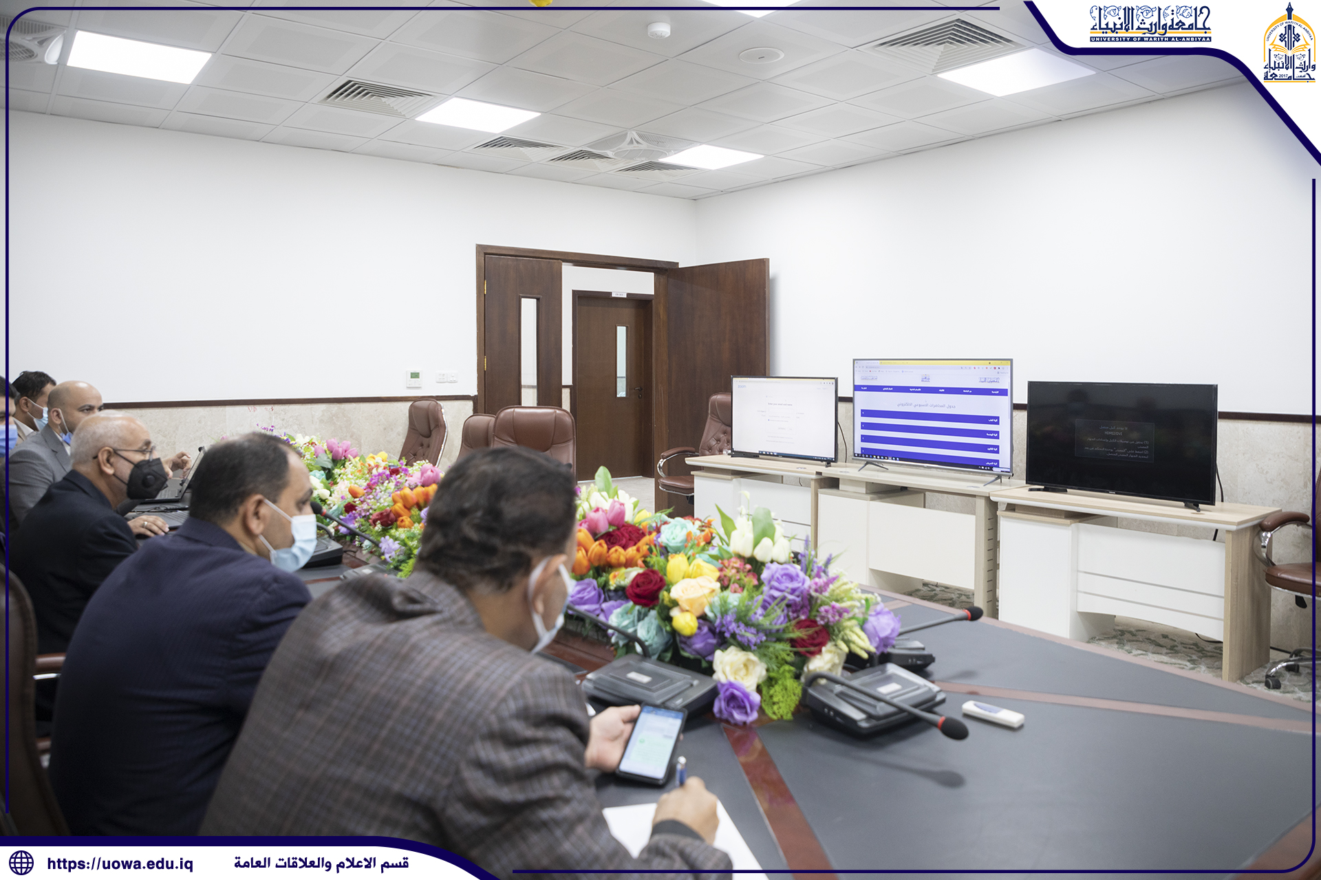 During his direct online supervision, Prof. Dr. Abbas Al-Daami, assistant chancellor for scientific affairs alongside with Prof. Dr. Falih Ahmed Al-bayati, dean of medicine college followed-up the course of e-lectures delivered for the students of the college of medicine and stressed on the use of modern means of education compatible with the agreed international standards in order to promote the process of e-learning in all university formations.