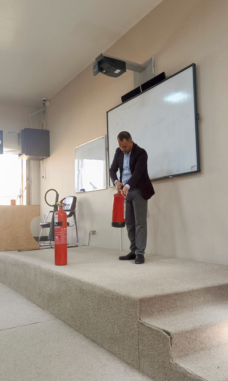 The Civil Defense and Occupational Safety Division at Warith al-Anbiya University (peace be upon them) held a training workshop on fires, how to prevent them, and how to use fire extinguishers when necessary, as well as learning about the types of fire extinguishers and their uses, in the presence of the staff of the College of Nursing at the university.