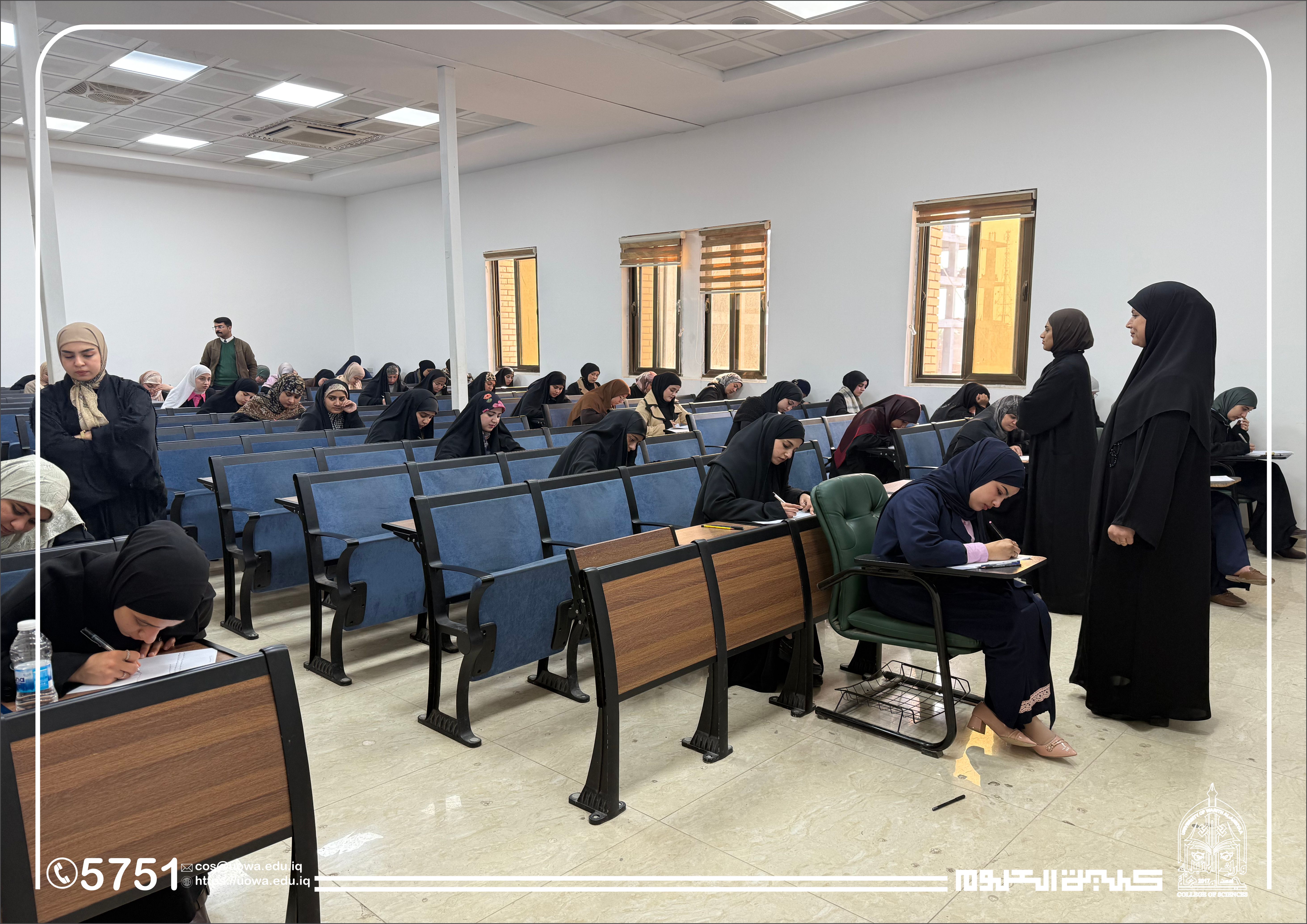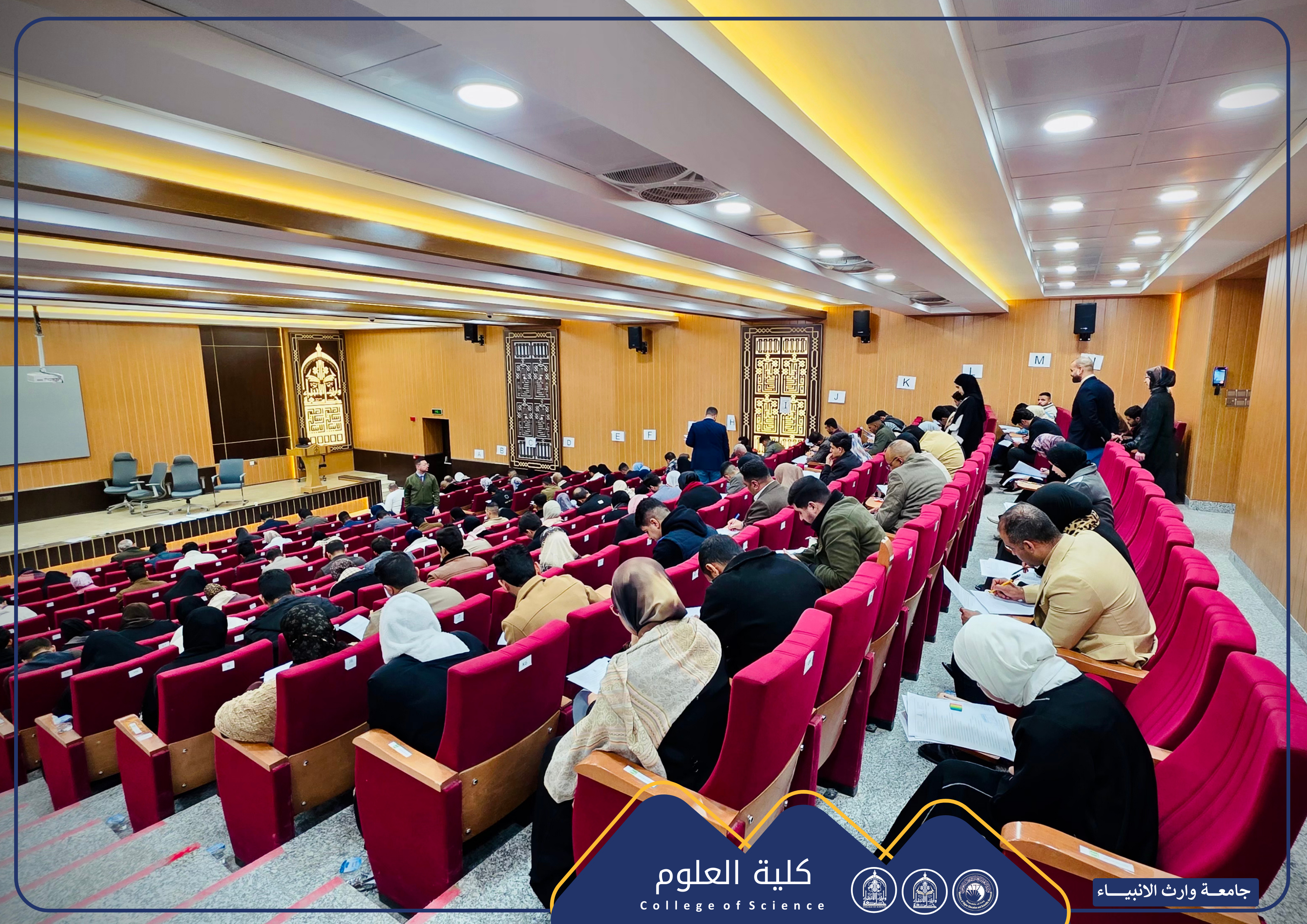 The College of Science at the University of Warith Al-Anbiyaa (peace be upon him) is pleased to announce the successful completion of final exams for first-year students for the current academic year. The exams were conducted in an organized and smooth manner, reflecting the college’s commitment to ensuring a fair and supportive academic environment.