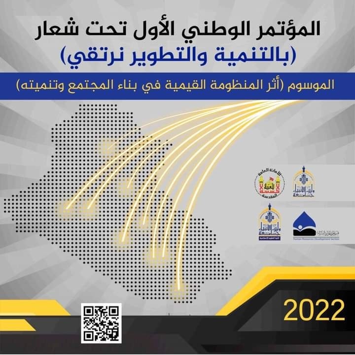 Wraith Al-Anbiyaa University (peace be upon him) invites esteemed researchers interested in human development to participate in the First National Conference under the theme "Advancement through Development and Growth." This conference is titled "The Impact of the Value System in Building and Enhancing Society" and is jointly organized by the Holy Hussein Shrine and Wraith Al-Anbiyaa University's College of Islamic Sciences and the Department of Human Resource Development.