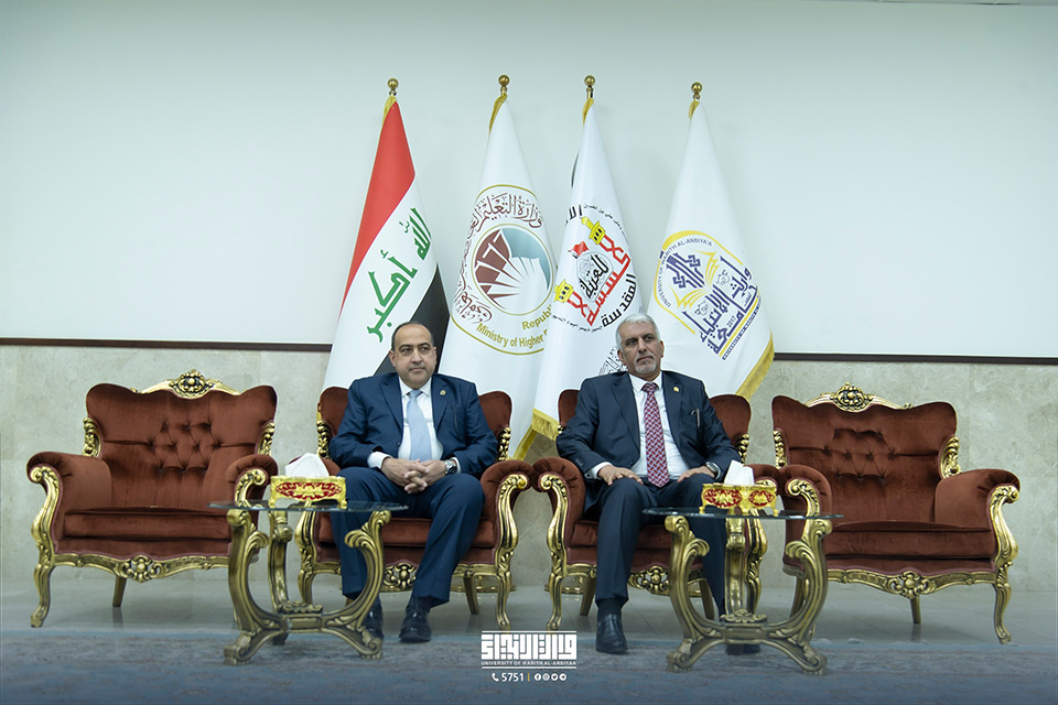 Professor Dr. Basem Al-Saeedi, the president of the University of Karbala, was met by Professor Dr. Ibrahim Al-Hayawi, the president of the university.