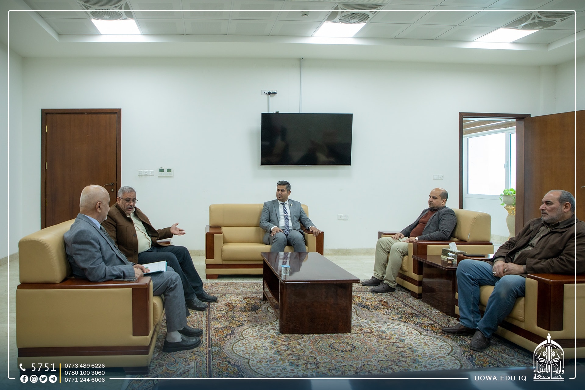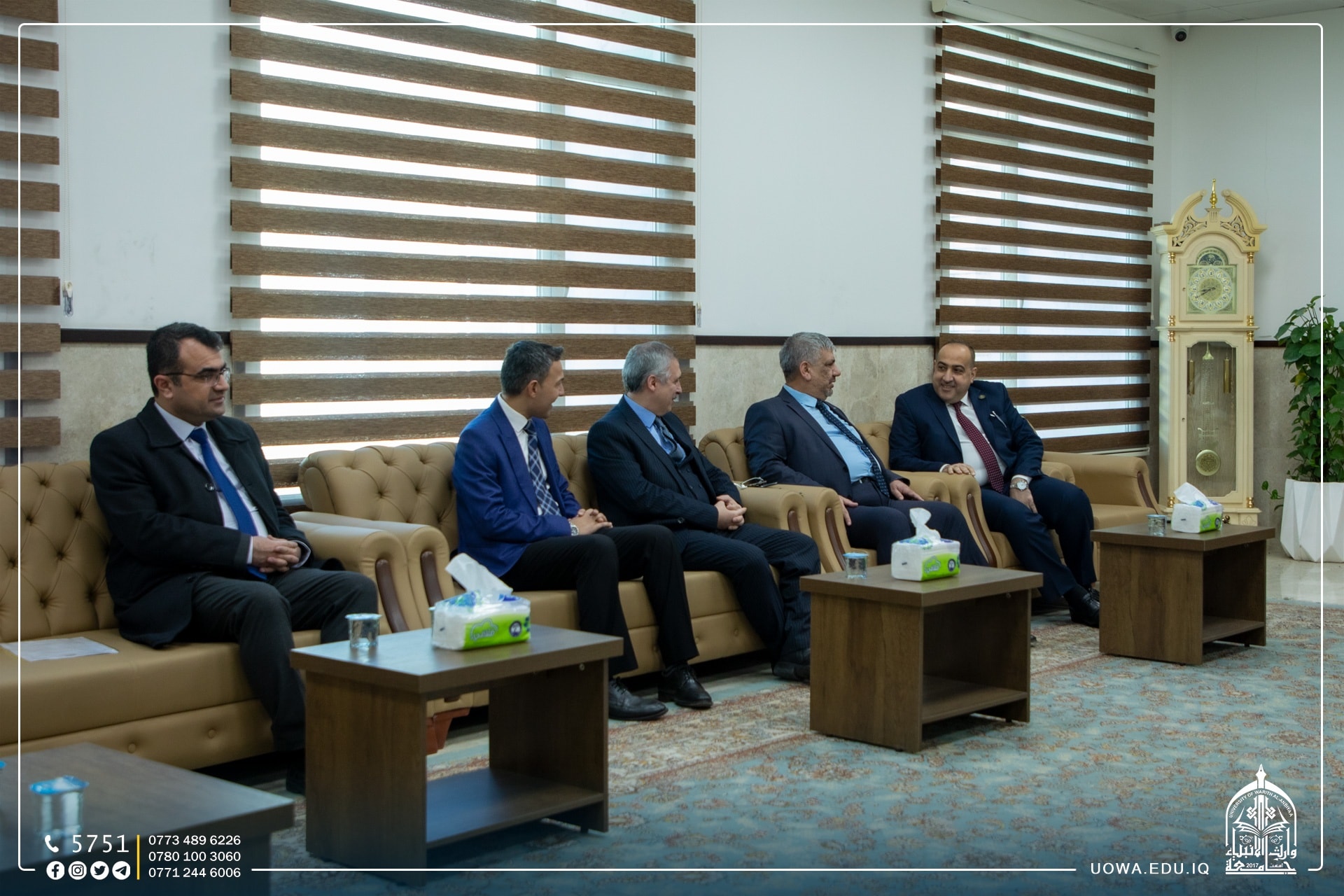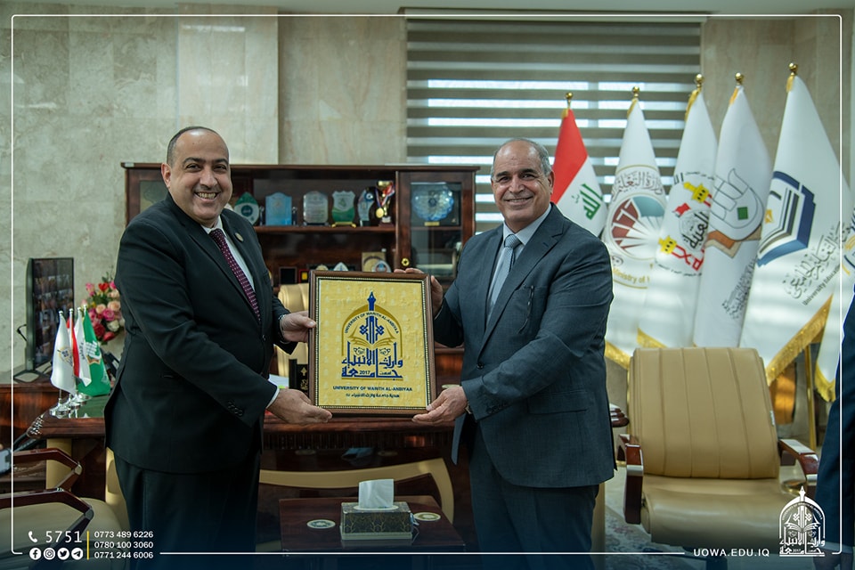 The Presidency of Warith Al-Anbiyaa University represented by Prof. Dr. Nawfal Al-Araji, Assistant President for Administrative Affairs, received a delegation from the Shiite Endowment Office (Department of Shrines in Iraq) headed by Mr. Alaa Al-Qassim, Director General of Shrines. The mechanism of cooperation between the Diwan and the University was discussed through the publication of scientific research, and the establishment of scientific and educational seminars for students.
