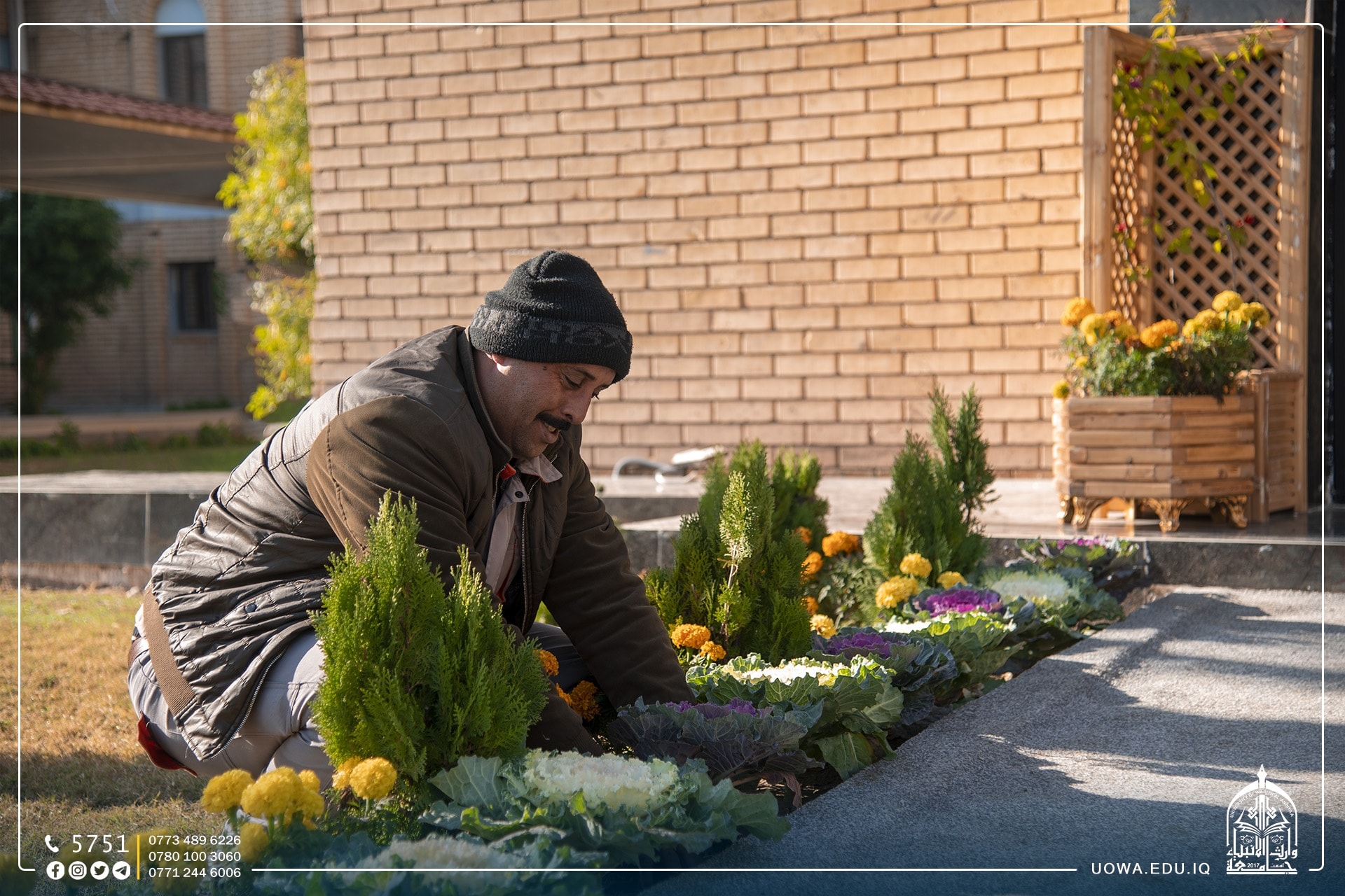 In pictures... Exceptional efforts of the staff of the Diwan Affairs Department at the University of Warith Al-Anbiyaa (peace be upon him) by paying attention to green spaces and the cleanliness of the university to represent it in the best way.
